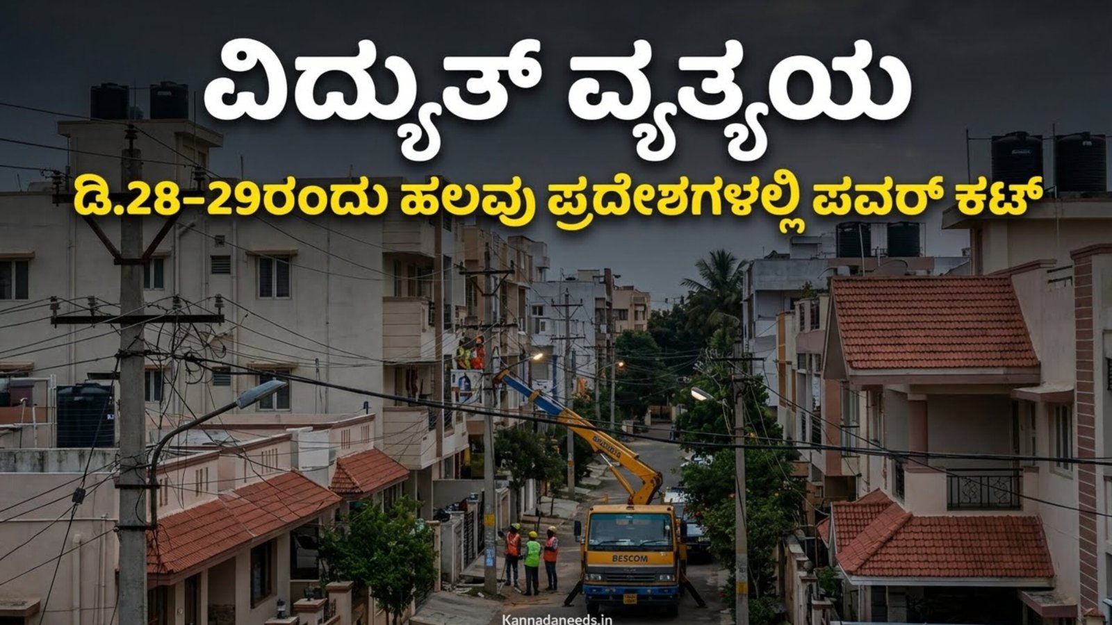 ಬೆಂಗಳೂರು: ನಗರದ ವಿವಿಧ ಭಾಗಗಳಲ್ಲಿ ನಡೆಯುತ್ತಿರುವ ಕೆಪಿಟಿಸಿಎಲ್ (KPTCL) ತುರ್ತು ನಿರ್ವಹಣಾ ಕಾಮಗಾರಿಗಳ ಹಿನ್ನೆಲೆಯಲ್ಲಿ, ಡಿಸೆಂಬರ್ 28 ಮತ್ತು 29ರಂದು ಕೆಲವು ಪ್ರದೇಶಗಳಲ್ಲಿ ವಿದ್ಯುತ್ ಪೂರೈಕೆ ತಾತ್ಕಾಲಿಕವಾಗಿ ಸ್ಥಗಿತಗೊಳ್ಳಲಿದೆ ಎಂದು ಬೆಸ್ಕಾಂ (BESCOM) ಅಧಿಕೃತ ಪ್ರಕಟಣೆ ಹೊರಡಿಸಿದೆ.
